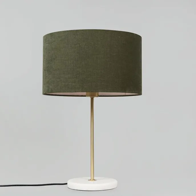 Breng sfeer in je interieur met onze Kaso tafellamp. Het is een lamp voor de liefhebber van strakke vormgeving en eenvoudige lijnen. De lamp heeft een hoogte van 55 cm en een diameter van 35 cm. De voet heeft een diameter van 18 cm. De Kaso wordt tevens met kabel geleverd waarvan de lengte 200 cm is. De combinatie van de mos groene kap, het goud/messing en de marmeren voet zorgen voor rust in jouw ruimte: een leuk nachtlampje, of een decoratieve tafellamp in de woonkamer. De lampenkap van de tafellamp is vervangbaar waardoor je zelf kunt bepalen wanneer het tijd is voor een nieuwe uitstraling. Kies nog voor een lichtbron passend in een E27 fitting (max. 60 Watt). De lamp is tevens dimbaar met externe dimmer. Breng warm en gezellig licht in huis met deze tafellamp.