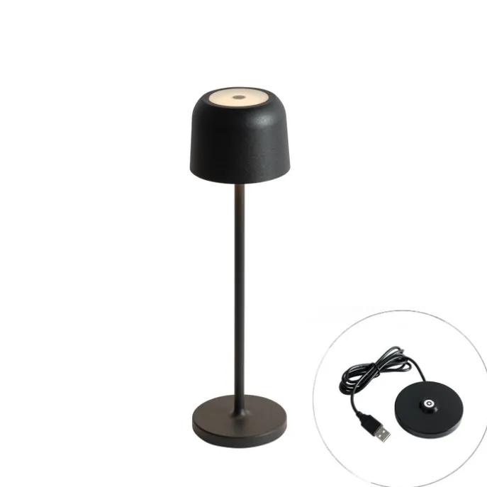 Tafellamp mushroom zwart oplaadbaar incl. laadstation – Raika