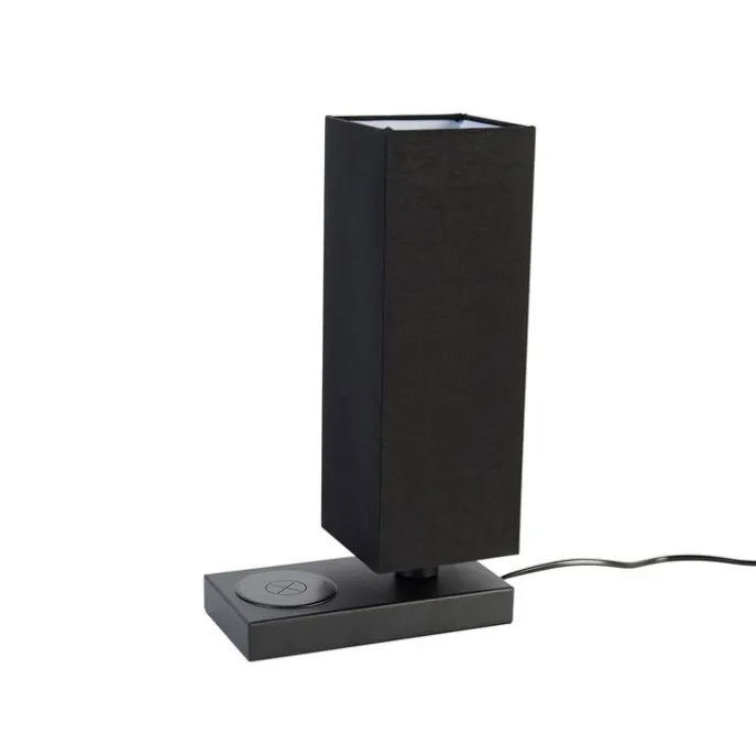 Tafellamp zwart met kap zwart met touch en inductielader – Romina