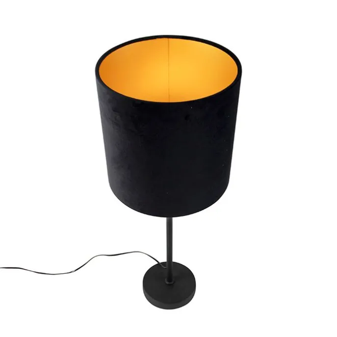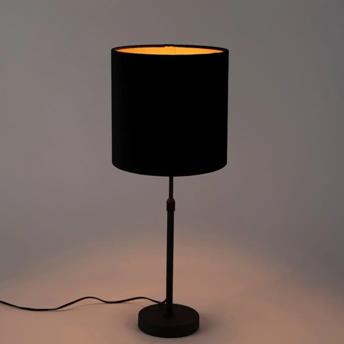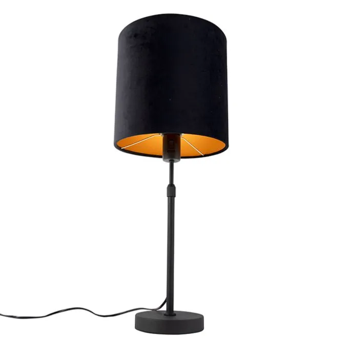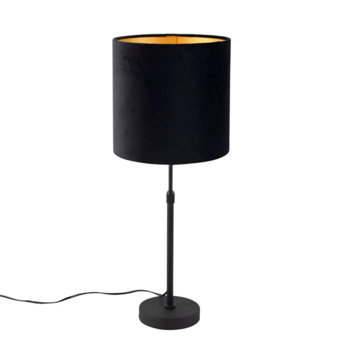 Tafellamp zwart met velours kap zwart met goud 25 cm – Parte