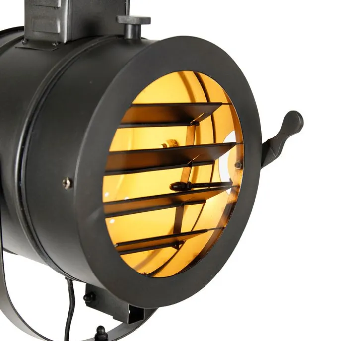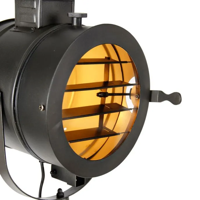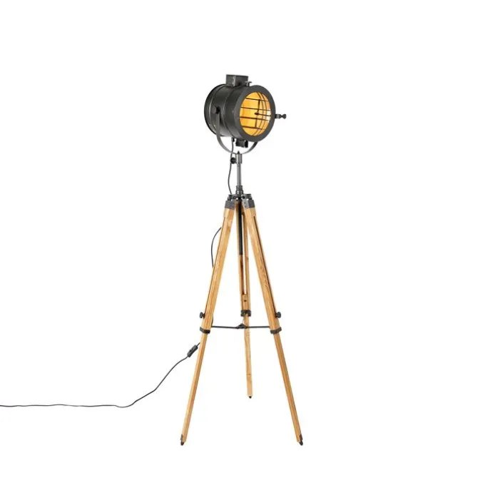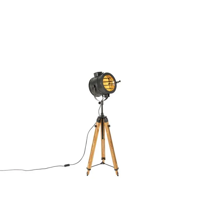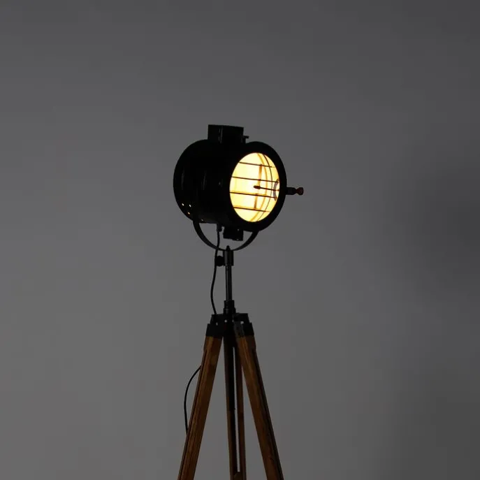 Tripod vloerlamp zwart met hout studiospot – Radient
