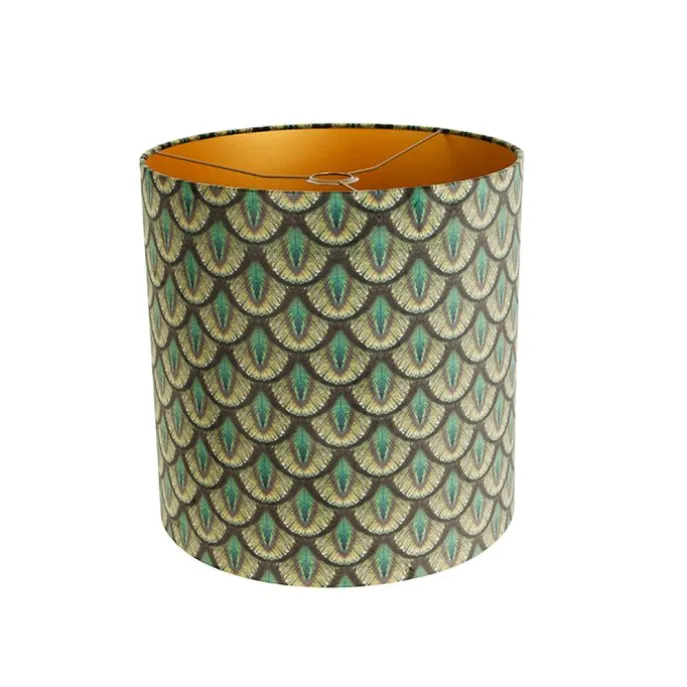 Velours lampenkap pauw dessin 40/40/40 gouden binnenkant