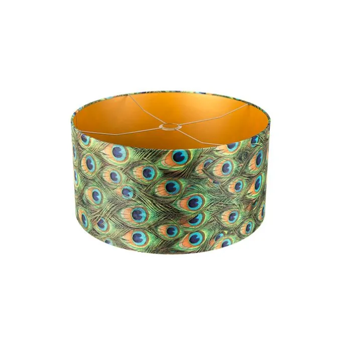 Velours lampenkap pauw dessin 50/50/25 met gouden binnenkant
