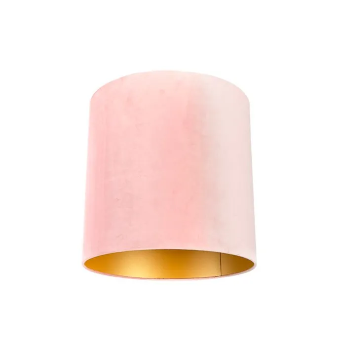 Velours lampenkap roze 40/40/40 met gouden binnenkant
