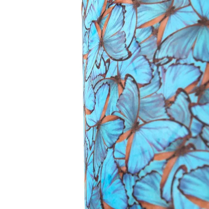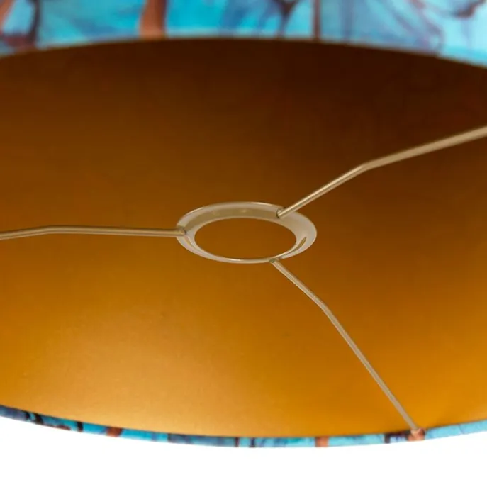 Wat een eyecatcher, deze velours lampenkap. Met deze lampenkap kun je jouw vloerlamp of hanglamp voorzien van een sfeervol uiterlijk waarbij de kap als sfeermaker fungeert. Deze lampenkap heeft een uniek vlinder dessin in blauw en oranje. Naast het unieke design aan de buitenkant is de lampenkap ook prachtig met goud afgewerkt aan de binnenkant, dat zorgt voor een gezellig lichteffect in huis. Hij heeft een diameter en hoogte van 40 cm. Let op: als je meerdere lampenkappen besteld zullen deze van elkaar verschillen. Geen één kap is precies hetzelfde. Deze vlinder kap is een echte toevoeging in je interieur!