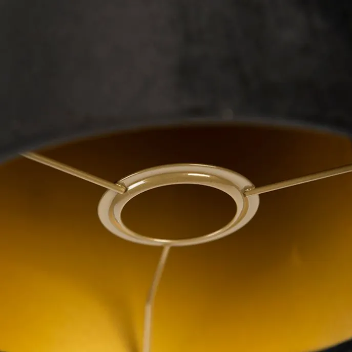 Velours lampenkap zwart 20/20/20 met gouden binnenkant