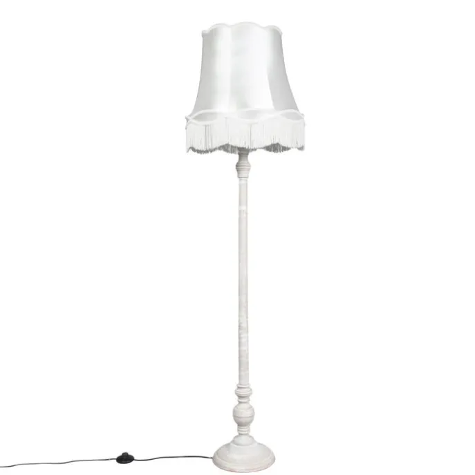 Vloerlamp grijs met Granny kap crème – Classico