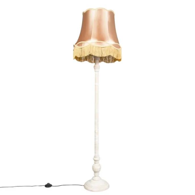 Vloerlamp grijs met Granny kap goud – Classico