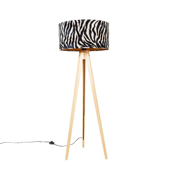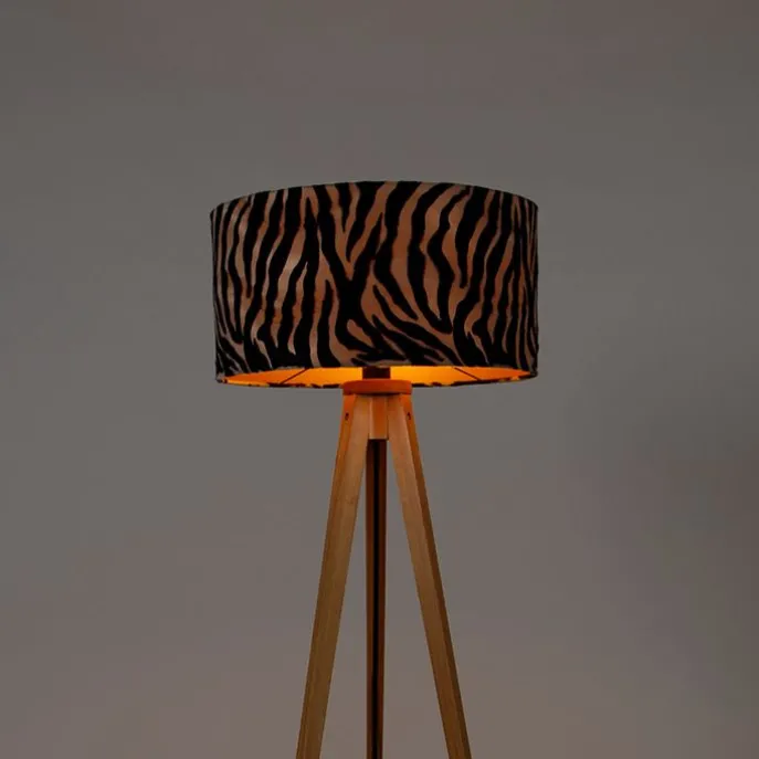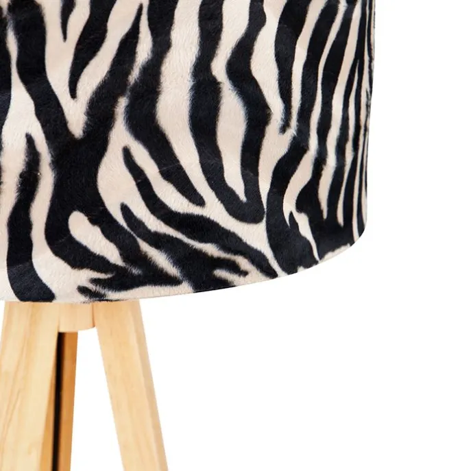 Vloerlamp hout met stoffen kap zebra 50 cm – Tripod Classic