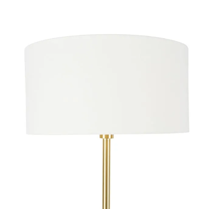 Vloerlamp messing met kap wit 50 cm – Simplo