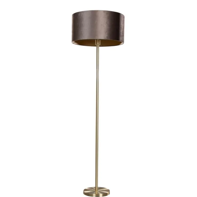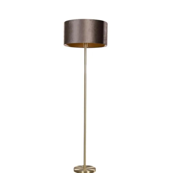 Vloerlamp messing met velours kap bruin 40cm – Simplo