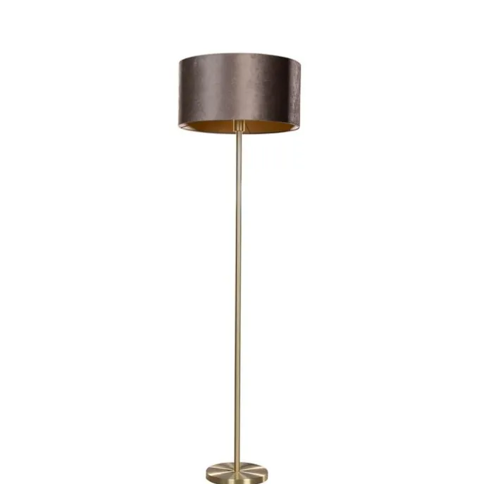 Vloerlamp messing met velours kap bruin 50cm – Simplo