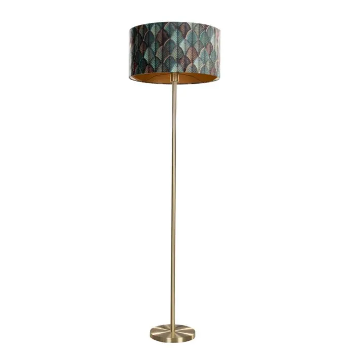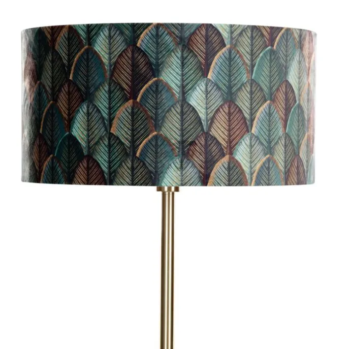 Vloerlamp messing met velours lampenkap blad dessin met gouden binnenkant 50/50/25 – Simplo