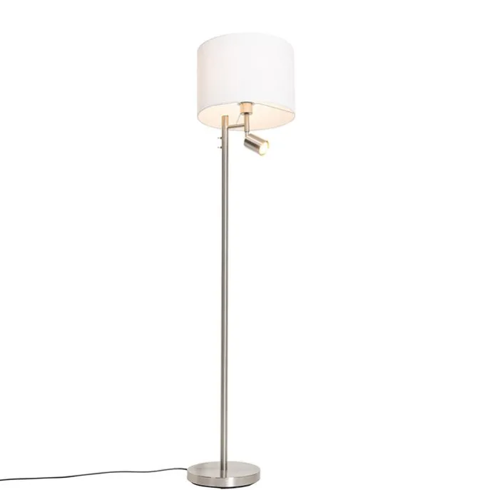 Vloerlamp staal met kap wit en leeslamp – Jelena