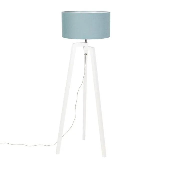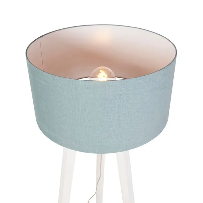 Vloerlamp tripod wit hout met mineraal kap 50 cm – Puros