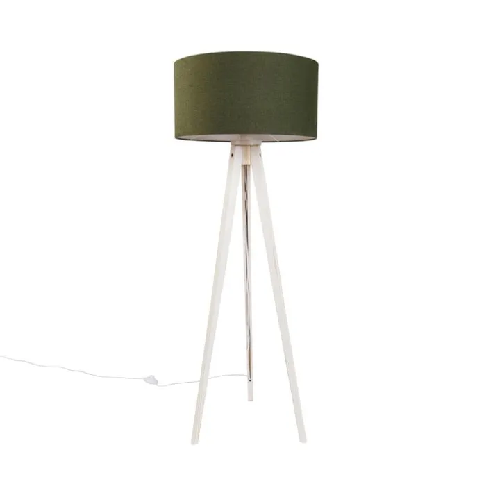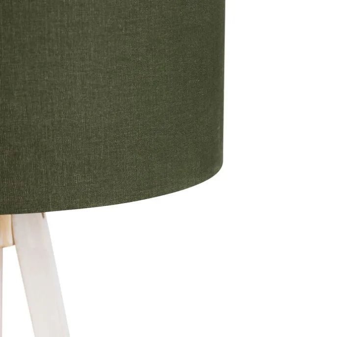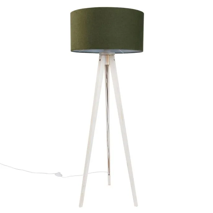 Vloerlamp tripod wit met stoffen kap donkergroen 50cm – Tripod Classic
