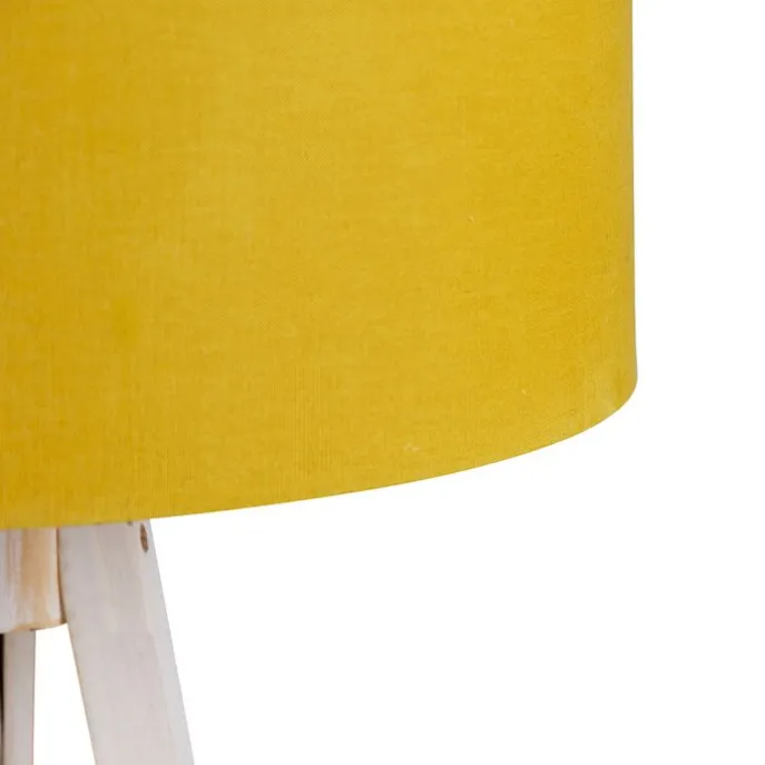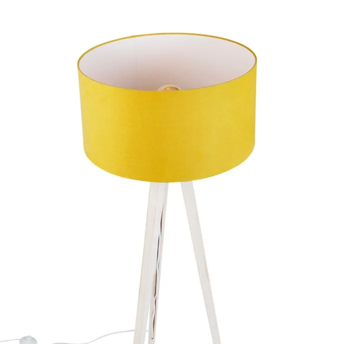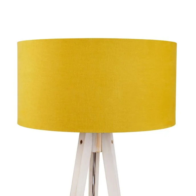 Vloerlamp tripod wit met stoffen kap geel 50cm – Tripod Classic