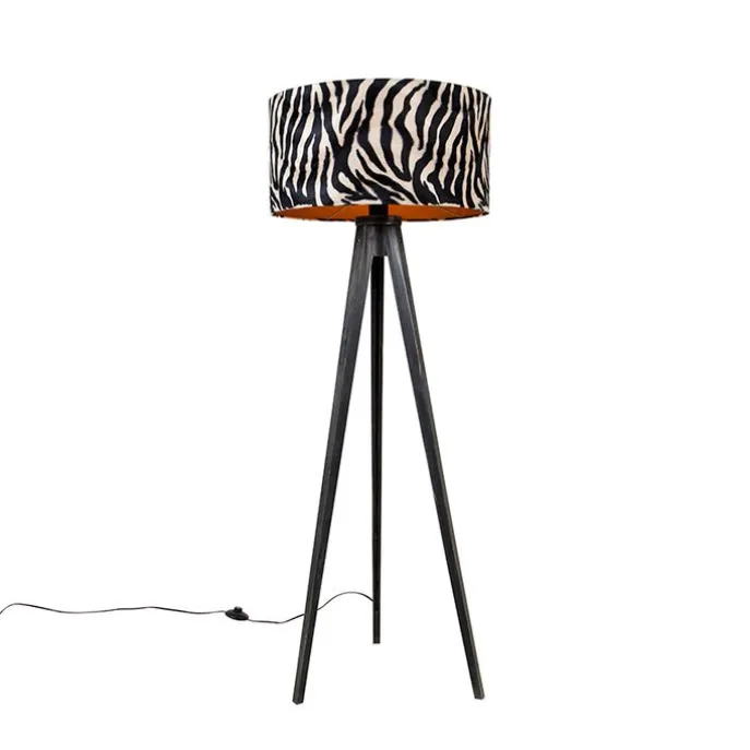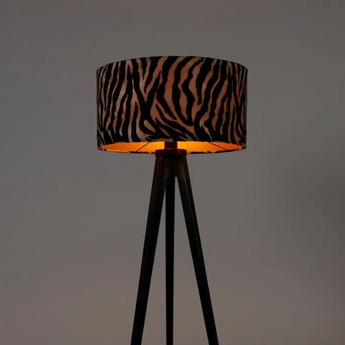 Vloerlamp tripod zwart met kap zebra 50 cm – Tripod Classic