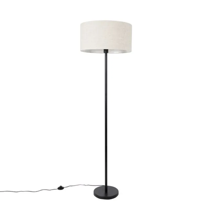Vloerlamp zwart met kap lichtgrijs 50 cm – Simplo