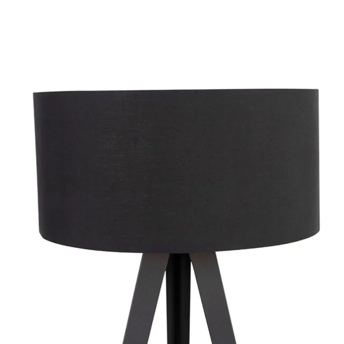 Vloerlamp zwart met kap zwart en gouden binnenkant – Ilse