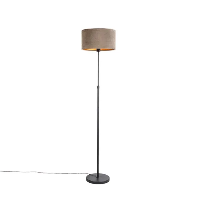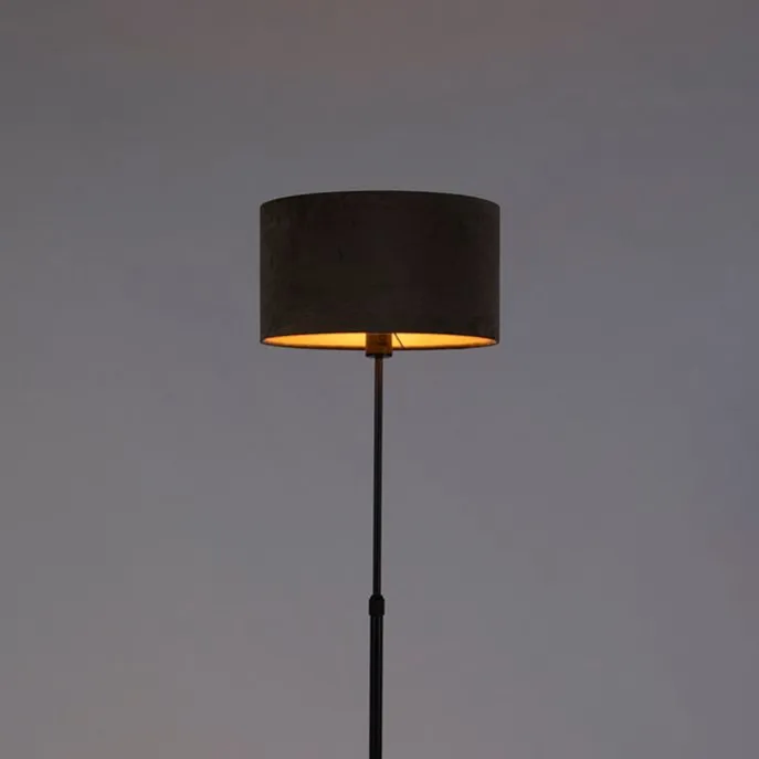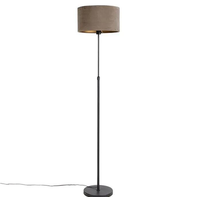 Vloerlamp zwart met velours kap taupe met goud 35 cm – Parte
