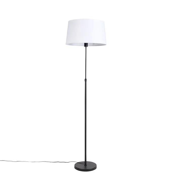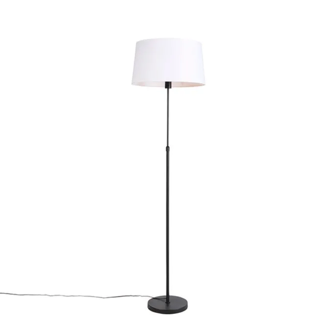 Vloerlamp zwart met witte linnen kap 45 cm verstelbaar – Parte