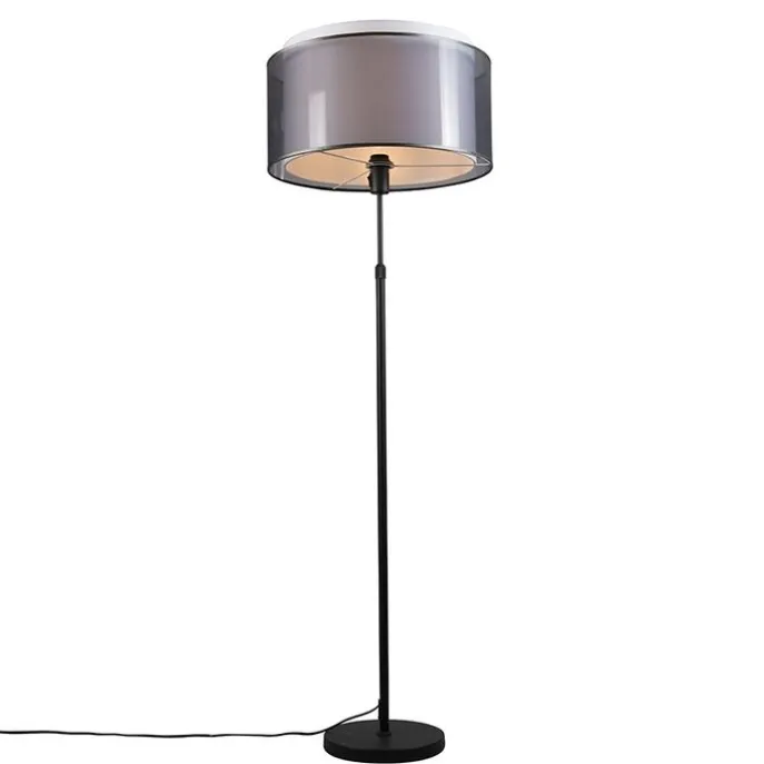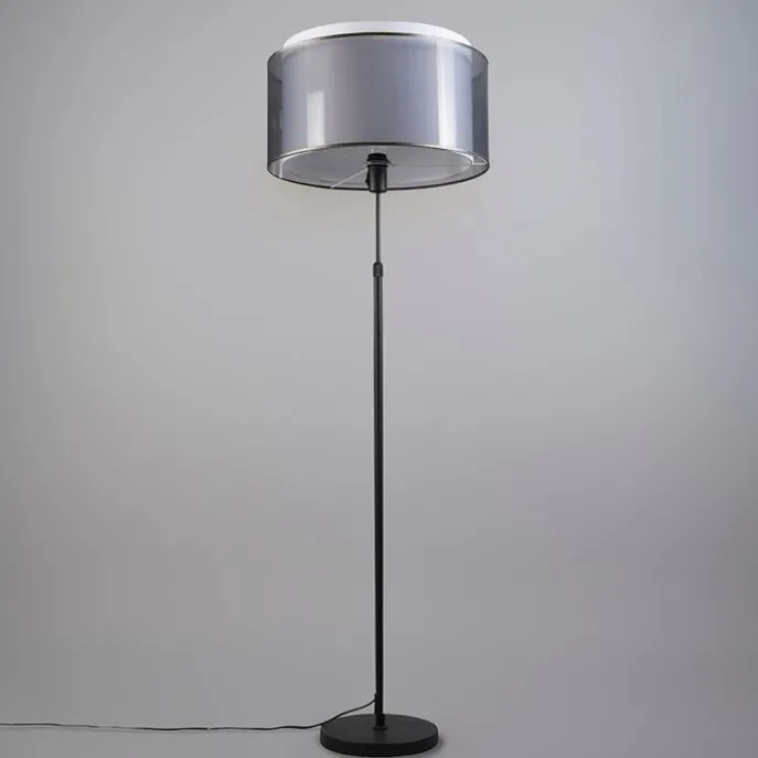Vloerlamp zwart met zwart/witte kap 47 cm verstelbaar – Parte