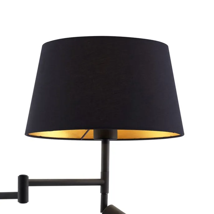 Vloerlamp zwart met zwarte kap en verstelbare leeslamp – Ladas