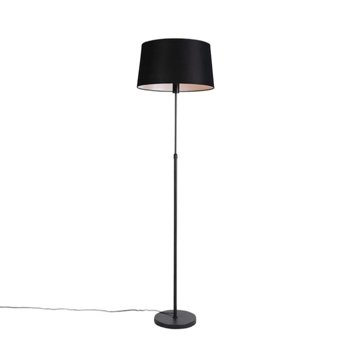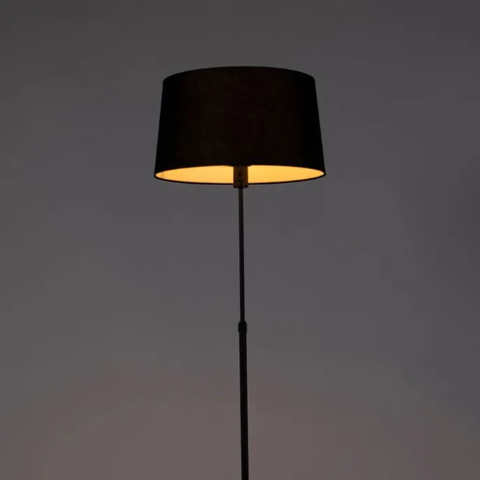 Vloerlamp zwart met zwarte linnen kap 45cm verstelbaar – Parte