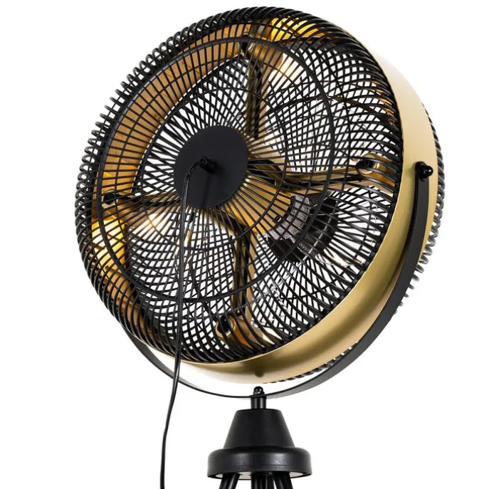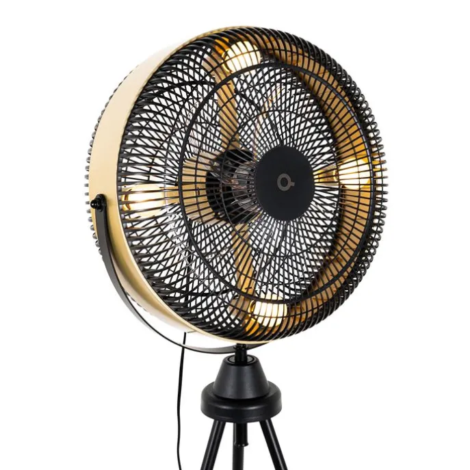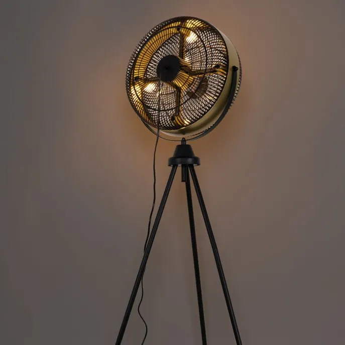 Vloerventilator zwart met goud4-lichts dimbaar – Kim