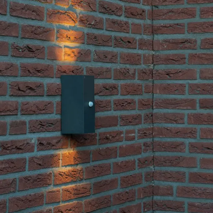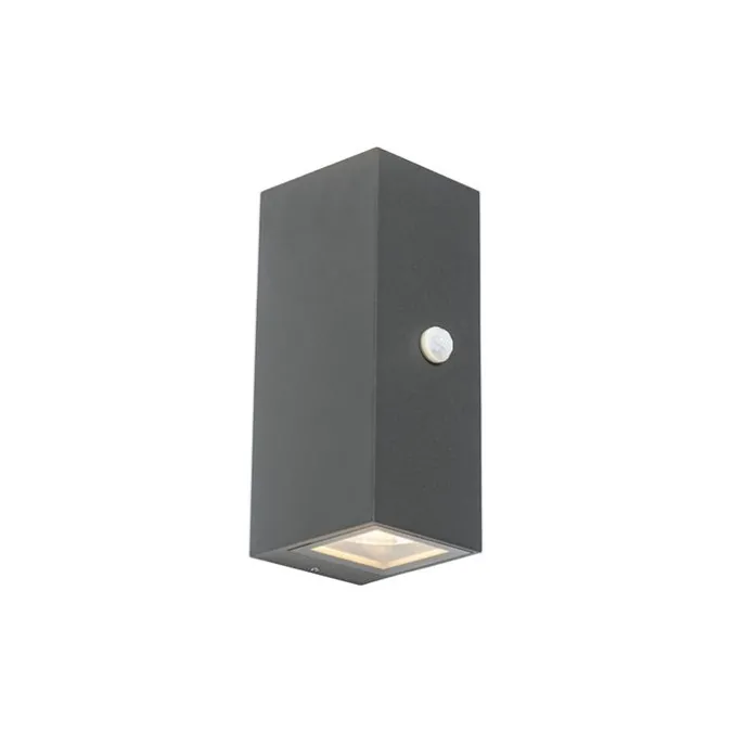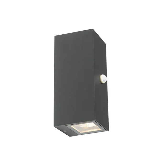 Wandlamp donkergrijs 2-lichts IP44 met bewegingssensor – Baleno