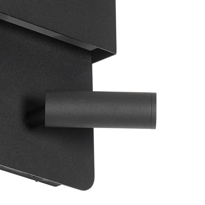 Wandlamp zwart incl. LED met USB en leeslamp met schakelaar – Robin