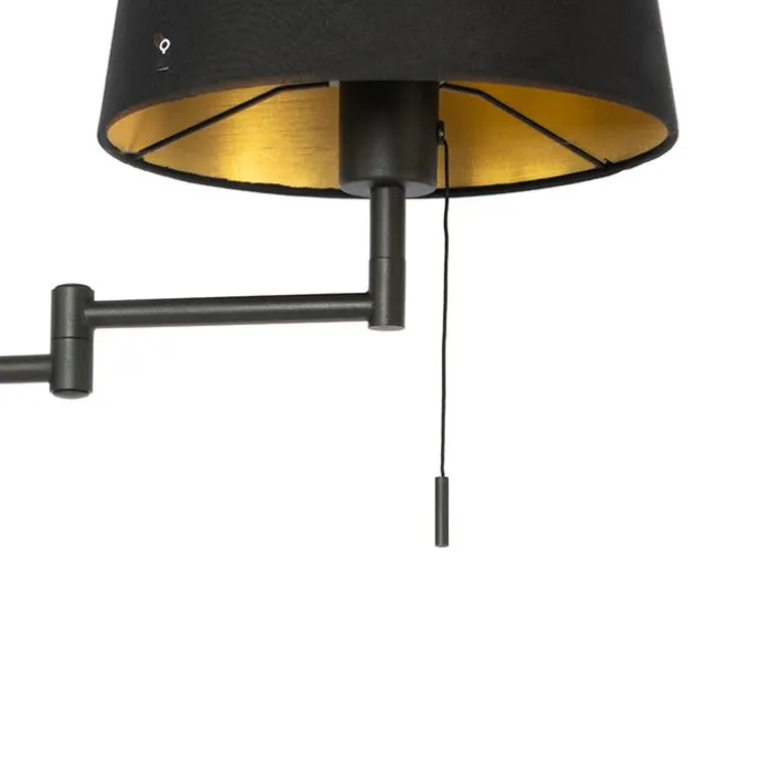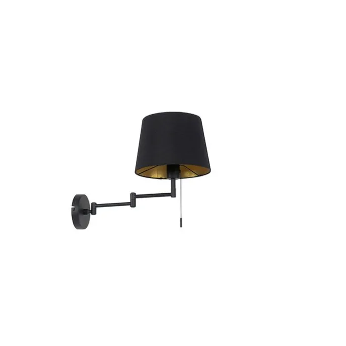 Wandlamp zwart met zwarte kap en verstelbare arm – Ladas Deluxe