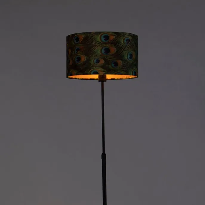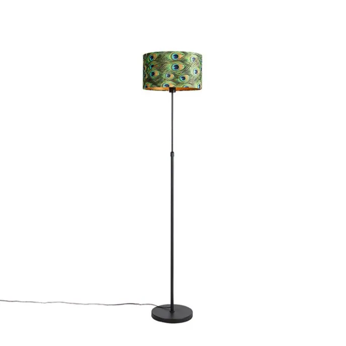 Zwarte vloerlamp met velours kap pauw met goud 35 cm – Parte